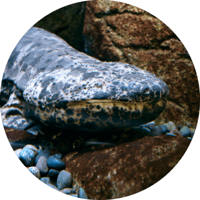 日本の固有種で、世界最大級の両生類。天然記念物にも指定されている。