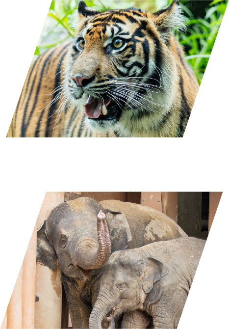 パームヤシを育てるために森が減っている。生息地が減少、分断され、エサが減り、繁殖のさまたげにもなっている。 -